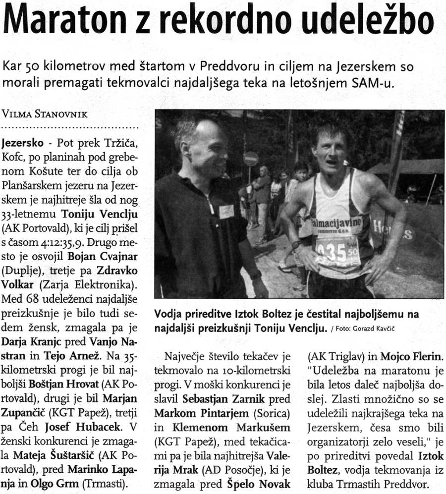 SAM 10 km - rekordna udeležba tekmovalcev (131 v cilju) je bila tudi